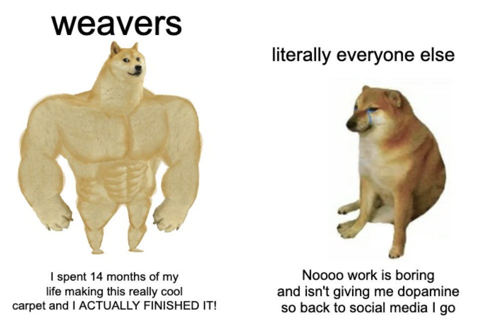 Seriously though: I have massive respect for weavers, because they are so dedicated to their craft and they make amazing things.