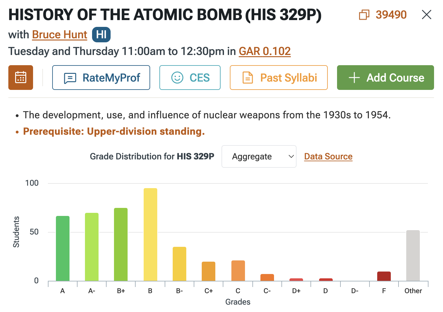 This one is mostly self-explanatory. Yes, I would like to keep a solid GPA and would prefer not to take a class where the grade distribution is cooked. Thus, I'm not taking History of the Atomic Bomb next semester. I'm sorry, Bruce Hunt, but that grade distribution is not ok![3]